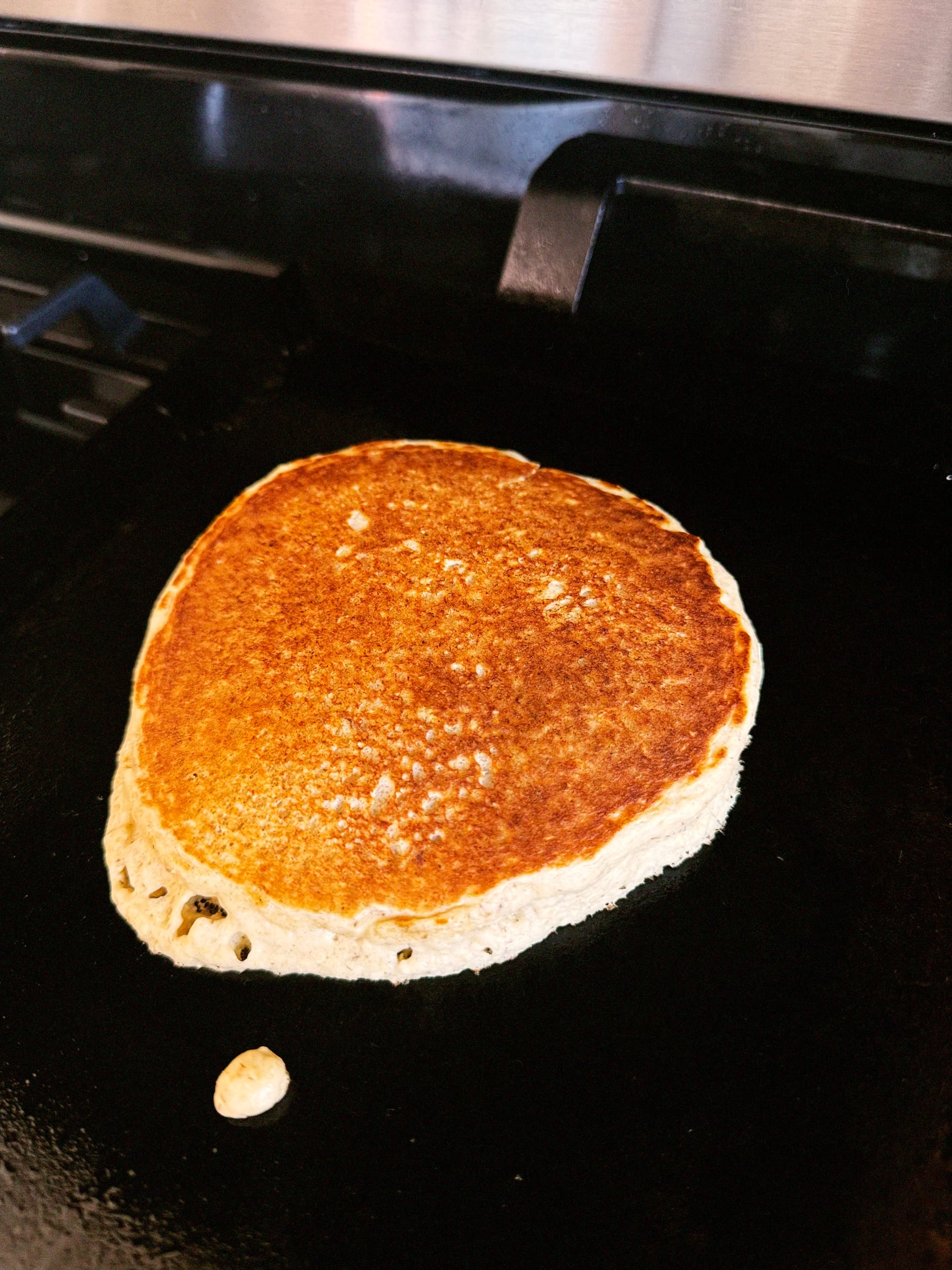 Griddle temp: Medium heat is key - oat flour browns faster than AP flour. If edges look dark before the center sets, lower the heat slightly.