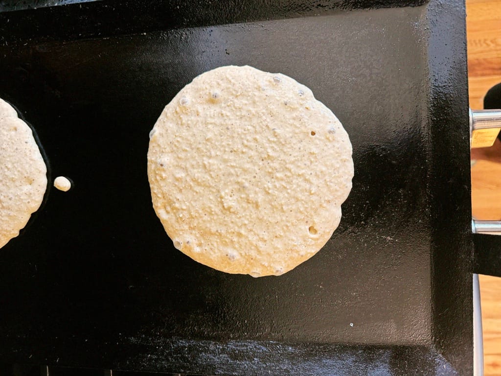 5 - Heat the griddle: Heat a griddle or non-stick skillet over medium heat. Lightly grease with butter or coconut oil. The griddle is ready when a drop of water skitters across the surface.