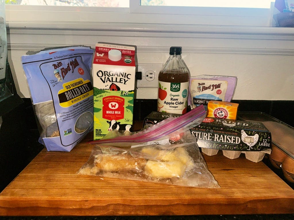 Liquid: Start with 1 cup milk and check consistency after the rest. If too thick to pour easily, add milk 1 tbsp at a time. Frozen banana moisture varies.