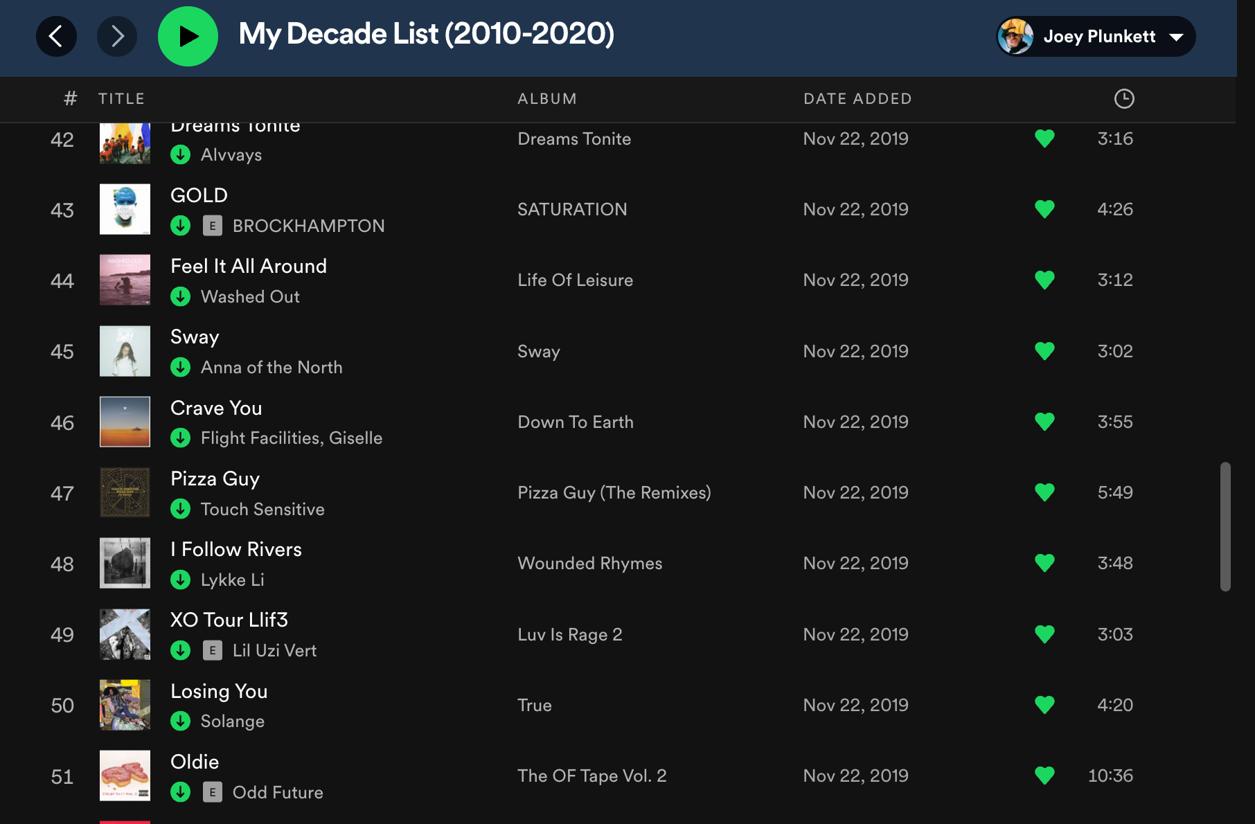 I ranked my top 100 songs released from 2010-2020 in order. I think you should too.